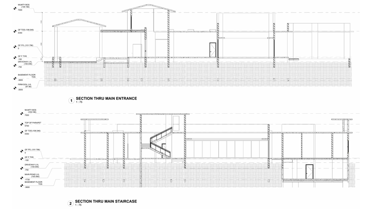 Sustainability was important design consideration leading to decision making and shaping the house. The possibility of replenishing the ground water table is further increased by the quantity of open areas and sparing hardscaping.